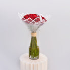مع أزهار الورود الفاخرة الطازجة ذات اللون الأحمر الداكن والمغلفة بغلاف شفاف أبيض بسيط ولكنه متطور، تنضح هذه الباقة بسحر بسيط، مما يسمح للورود بأن تحتل مركز الصدارة. ليست قوية للغاية، وليست صاخبة للغاية، بل مثالية لشخص يحب بساطة الطبيعة.