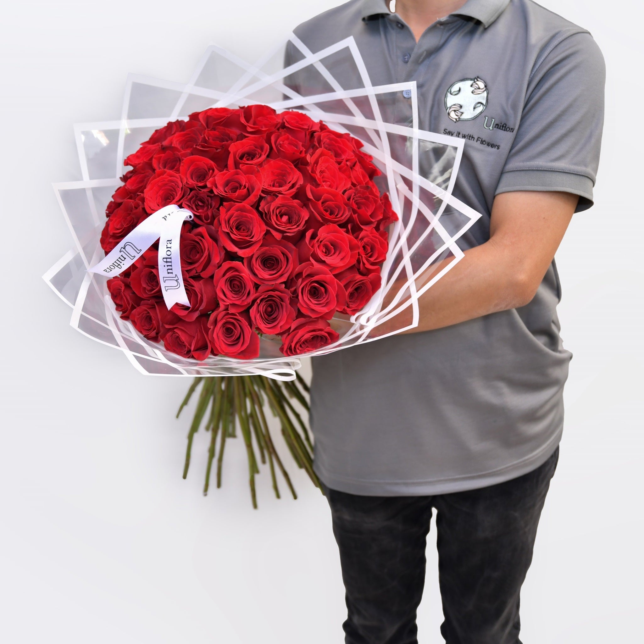 تحتوي على: 50 وردة حمراء.