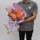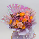 باقة الشفق مزيجٌ ساحرٌ من الرومانسية والإشراق، مغلفةٌ بغشاءٍ ثلاثي الأبعاد بلون اللافندر الأخّاذ، مما يجعلها تحفةً فنيةً آسرة. سواءً كانت هديةً صادقةً أو تعبيرًا عن الجمال، تُجسّد باقة الشفق سحر سماء المساء في شكلٍ زهري.