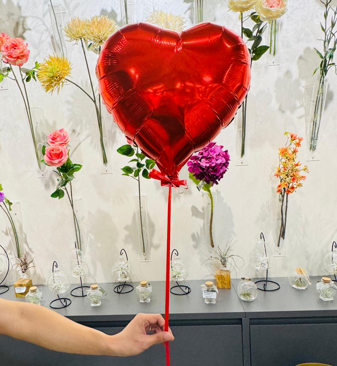بالون قلب أحمر من الفويل عائم، مملوء بغاز الهيليوم. إضافة مثالية لباقة الزهور المحبّة!