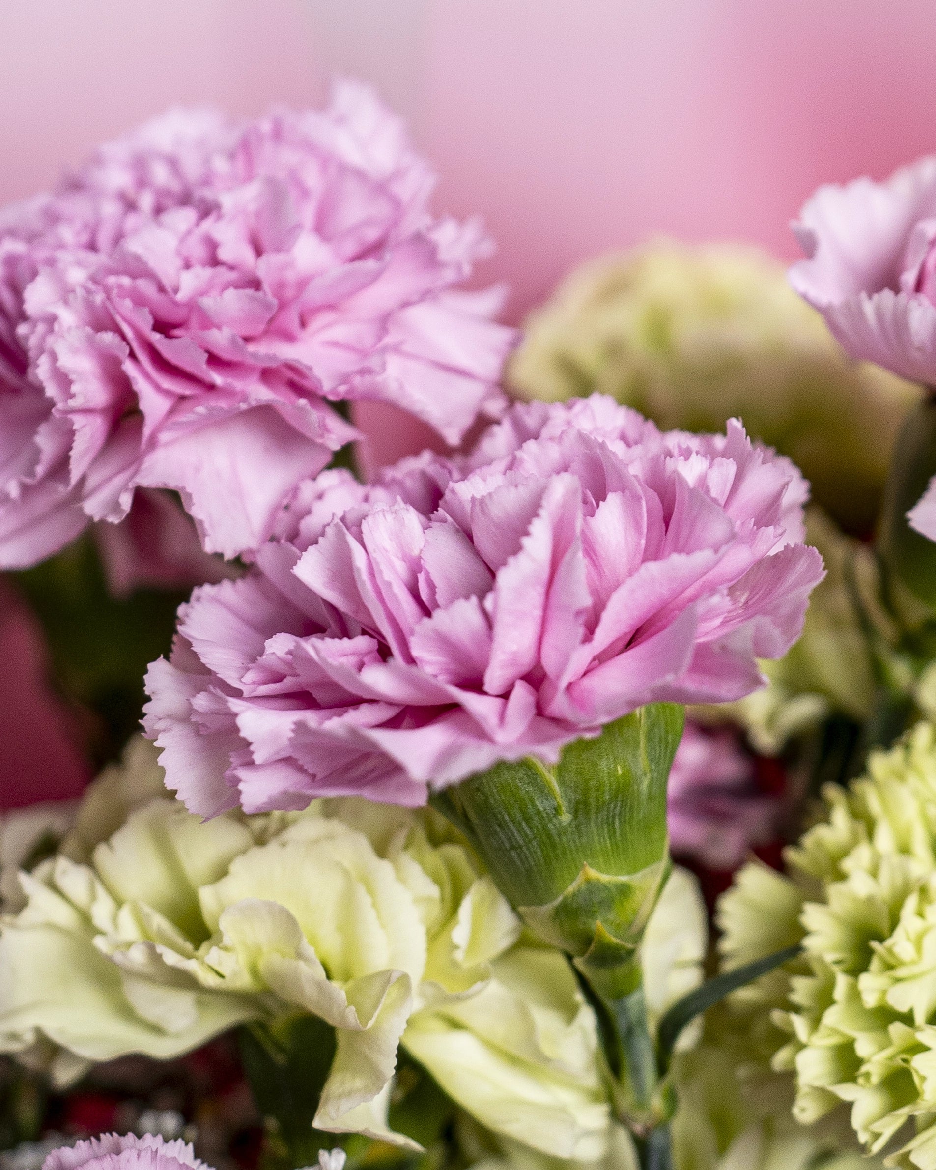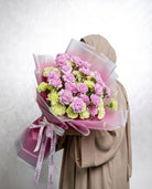 A sweet and refreshing bouquet of pink and light green carnations, beautifully wrapped in soft pink wrapping for a delicate and elegant look. Simple yet graceful, this bouquet is perfect for thoughtful gifting, celebrations, or adding a gentle touch of colour and joy to any occasion.