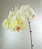 Includes: 2 yellow single stem orchids in blue art ceramic pot