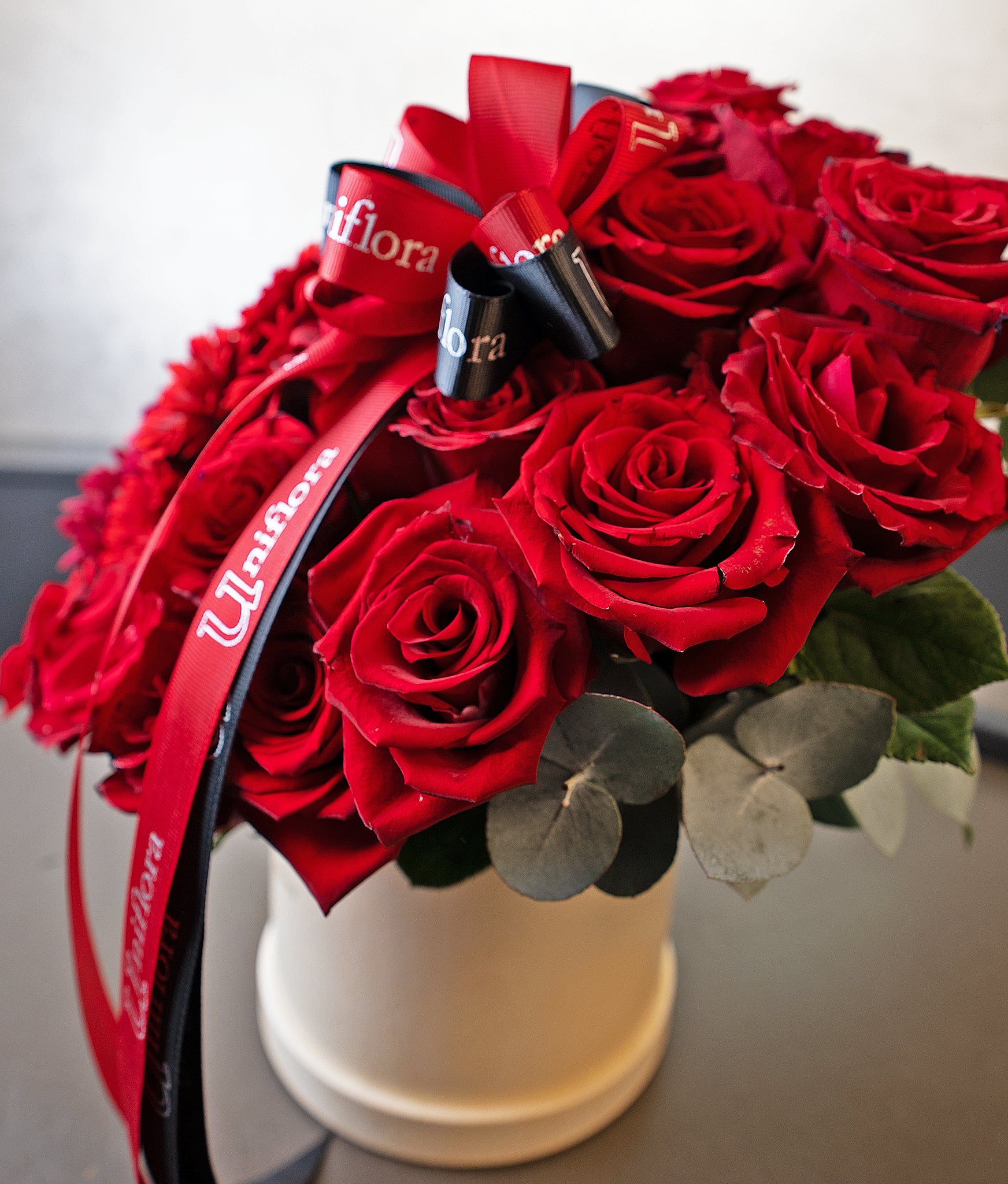 Bold, rich, and irresistibly romantic, Deep Rouge is a striking flower box arrangement crafted with deep-toned red blooms that embody passion and intensity. Set in an elegant box and finished with delicate ribbon detailing, this arrangement celebrates love in its most powerful form.